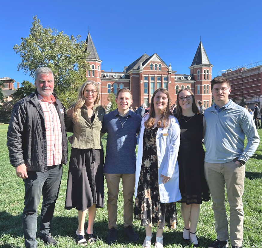 Lindsey, had her white coat ceremony at Mizzou’s veterinary school. During the white coat ceremony, vet students celebrate the conclusion of their classes and the start of their clinical rotation years. They receive white coats to